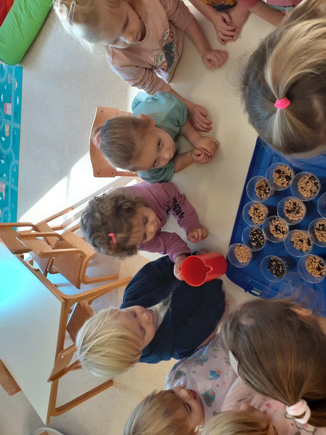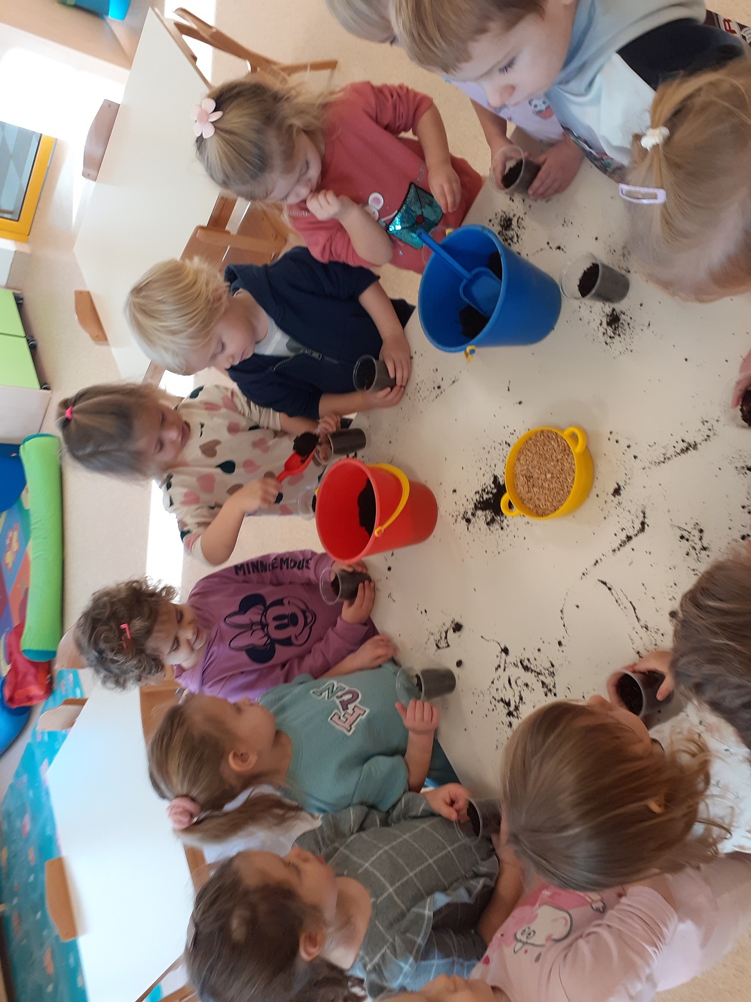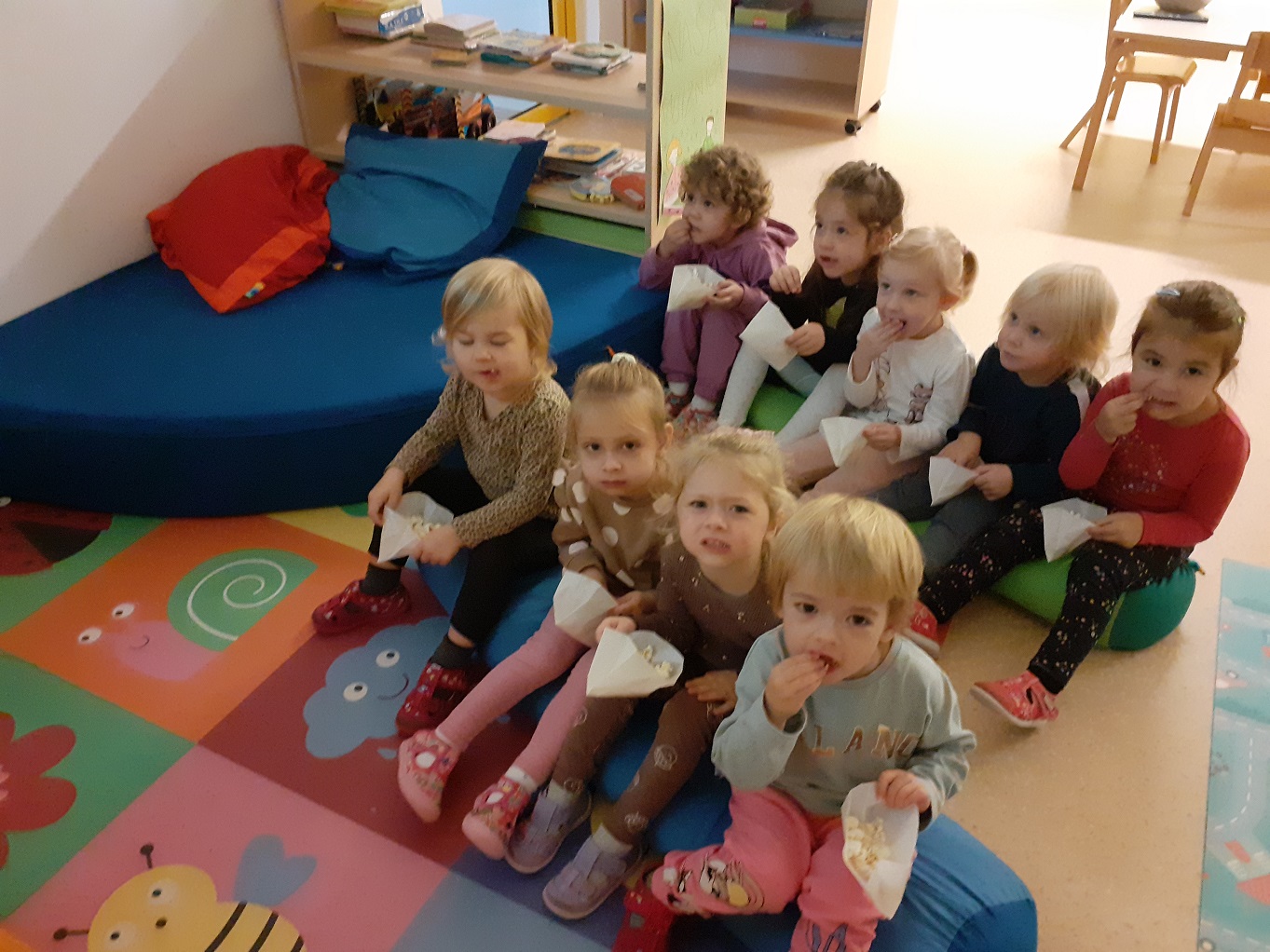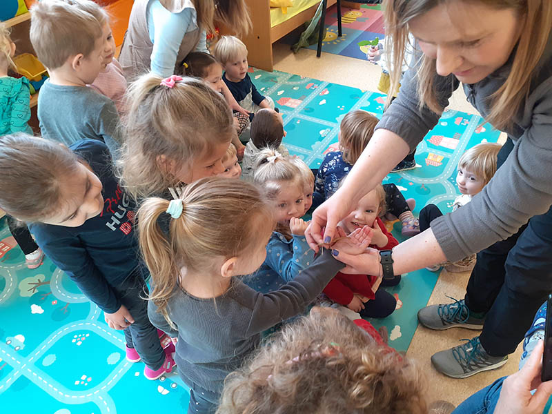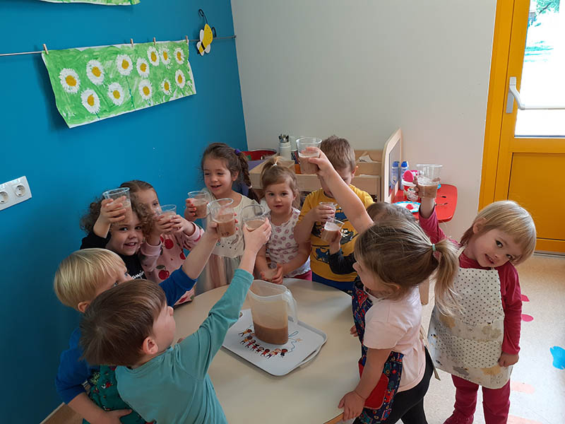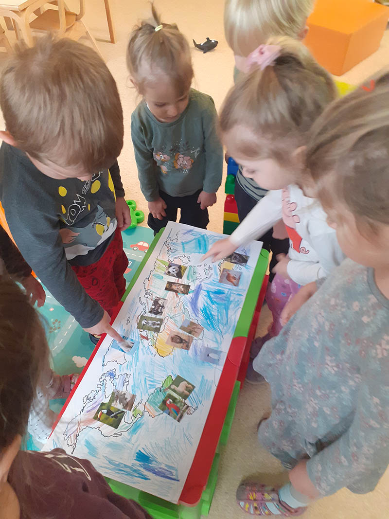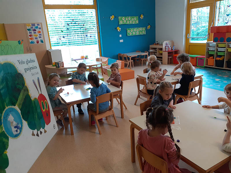 Mjesec travanj u skupini “Tratinčice” bio je vrlo šarolik. Najprije smo obilježili Dan planeta Zemlje istraživanjem našeg planeta, naučili smo koje životinje nastanjuju pojedini kontinent te smo izradili vlastitu kartu svijeta. Također nas je i posjetila gospođa Ivana Rojko koja je djeci ispričala edukativnu priču te im približila znanje o životinjama, a nakon toga su pojedine životinje mogli i istraživati tijekom posjete. Noć knjige obilježili smo zajedno s jasličkom skupinom “Mrkvice” sa dvije pričaonice priča. Priče koje su djeca slušala bile su “Vrlo gladna gusjenica” te “Pikov kišobran”. Povodom projekta “Tjedan zdravlja” započeli smo s izradom edukativnih plakata koje smo stavili u novoopremljeni centar tržnice. Tamo su djeca svakodnevno učila o zdravim namirnicama te zdravim navikama. Tako smo se i okušali u izradi domaće limunade i voćnog smoothia te smo kroz takve aktivnosti kod djece poticali istraživanje i isprobavanje zdravih namirnica te suradnju tijekom pripreme zdravih napitaka.Krajem mjeseca obilježili smo u suradnji sa ostalim skupinama Međunarodni dan plesa, a obilježili smo ga na način tako što smo svi zajedno zaplesali na vrtičkom igralištu.