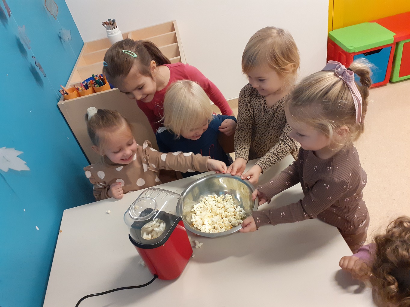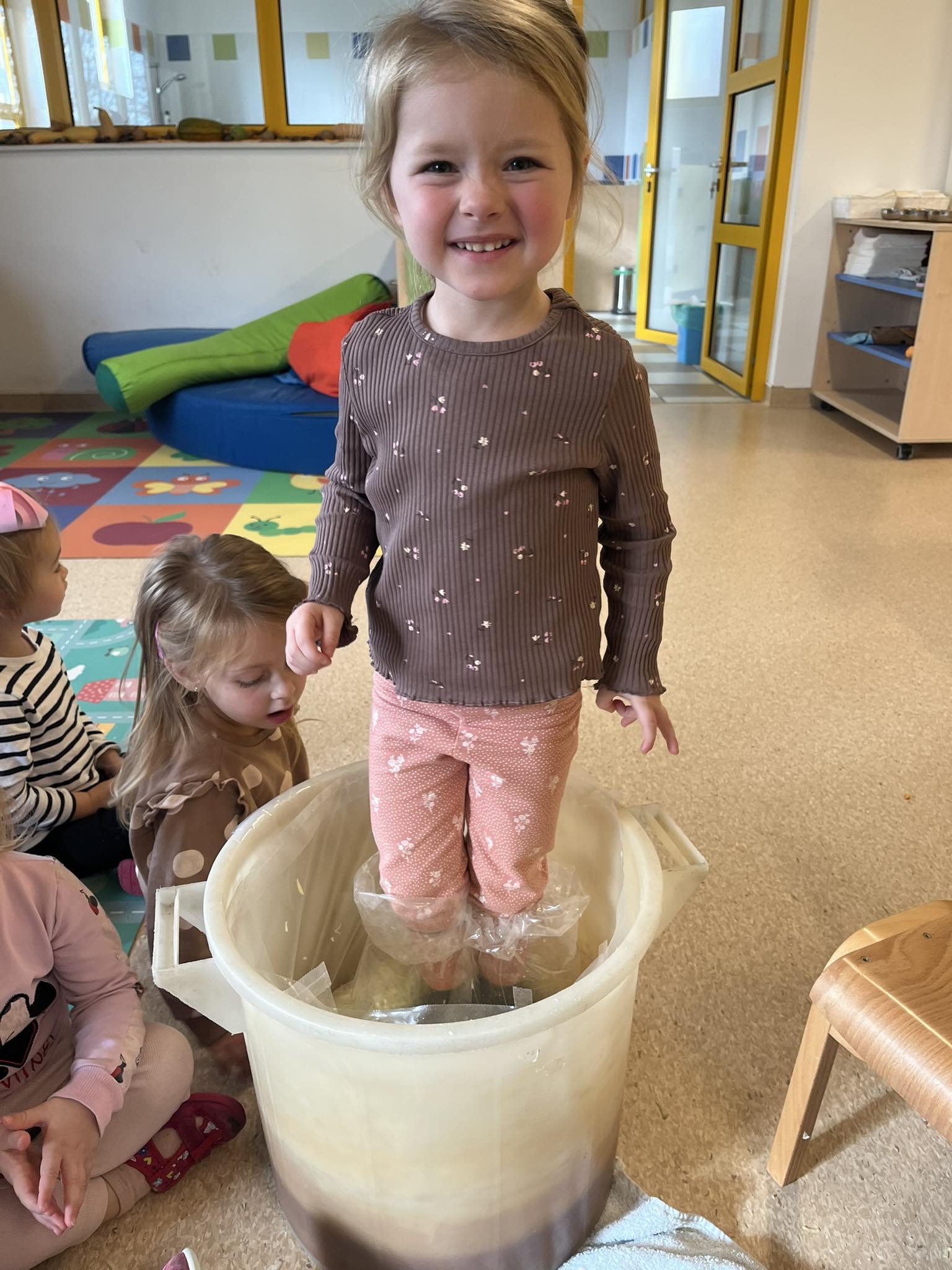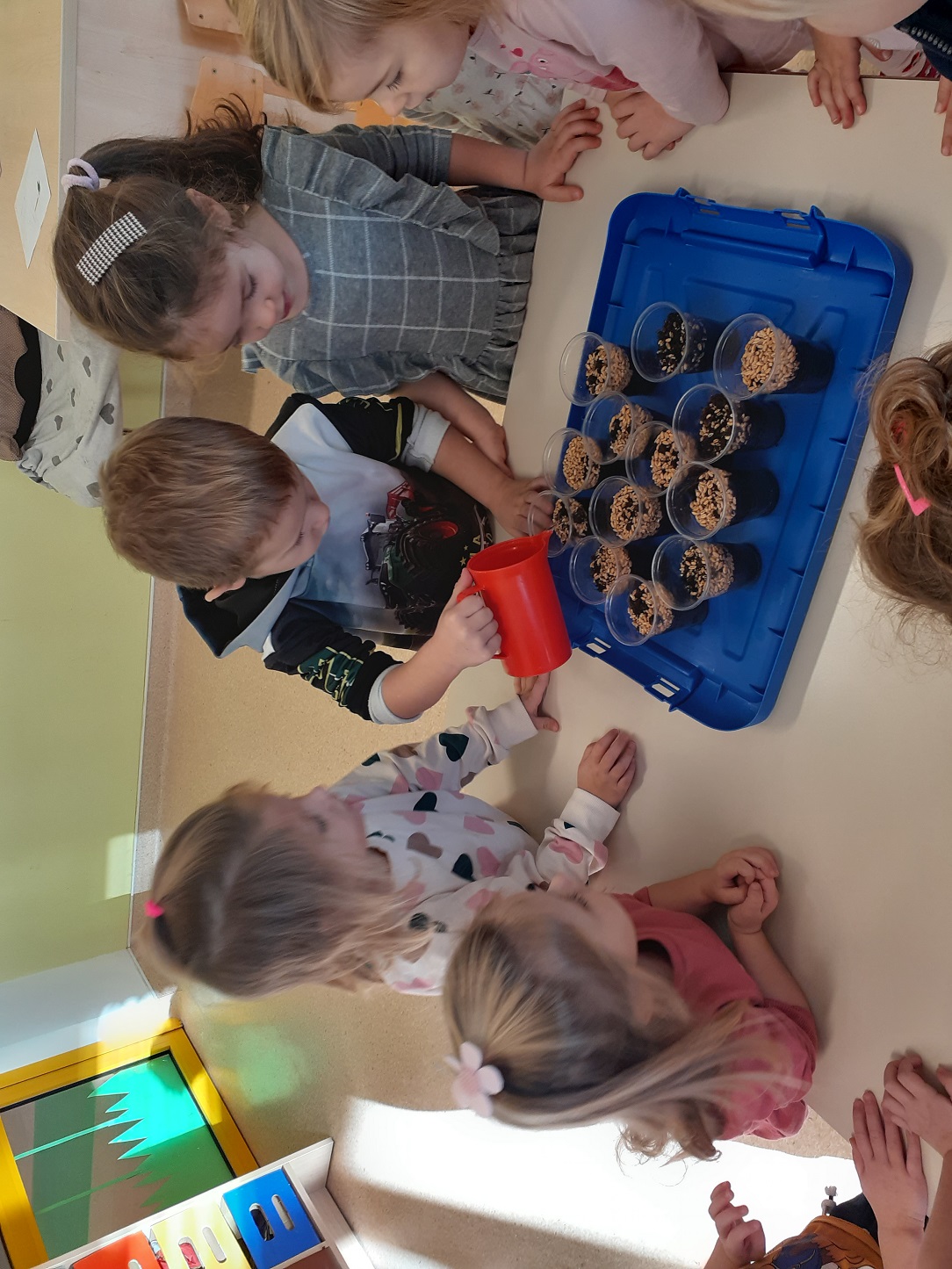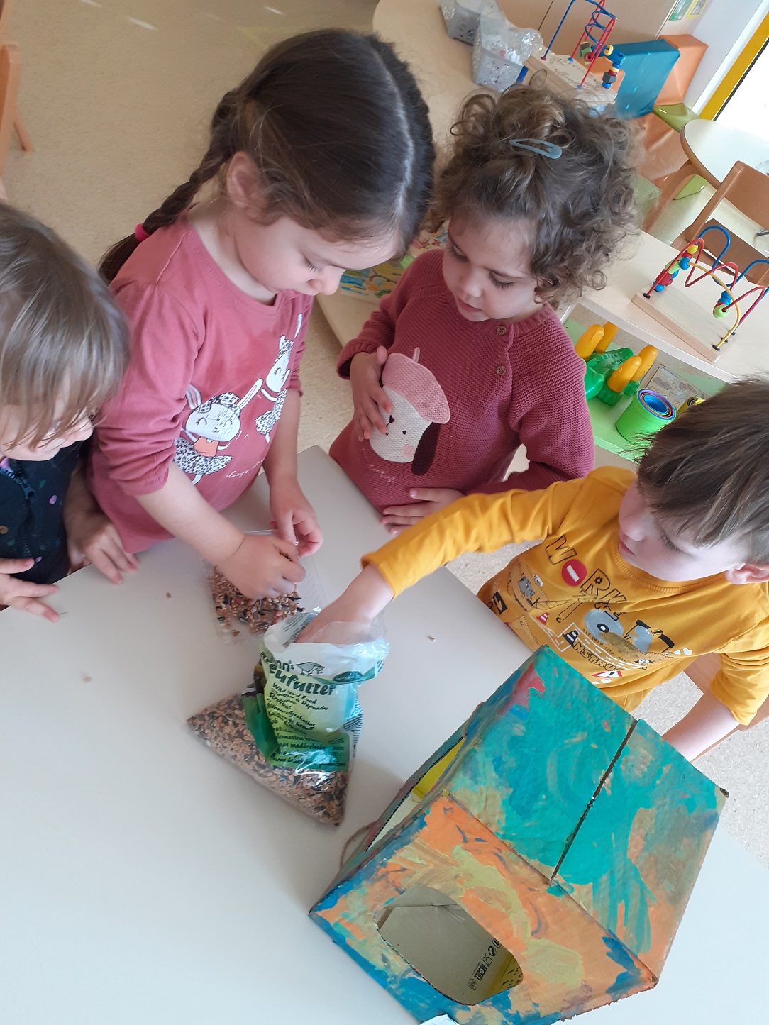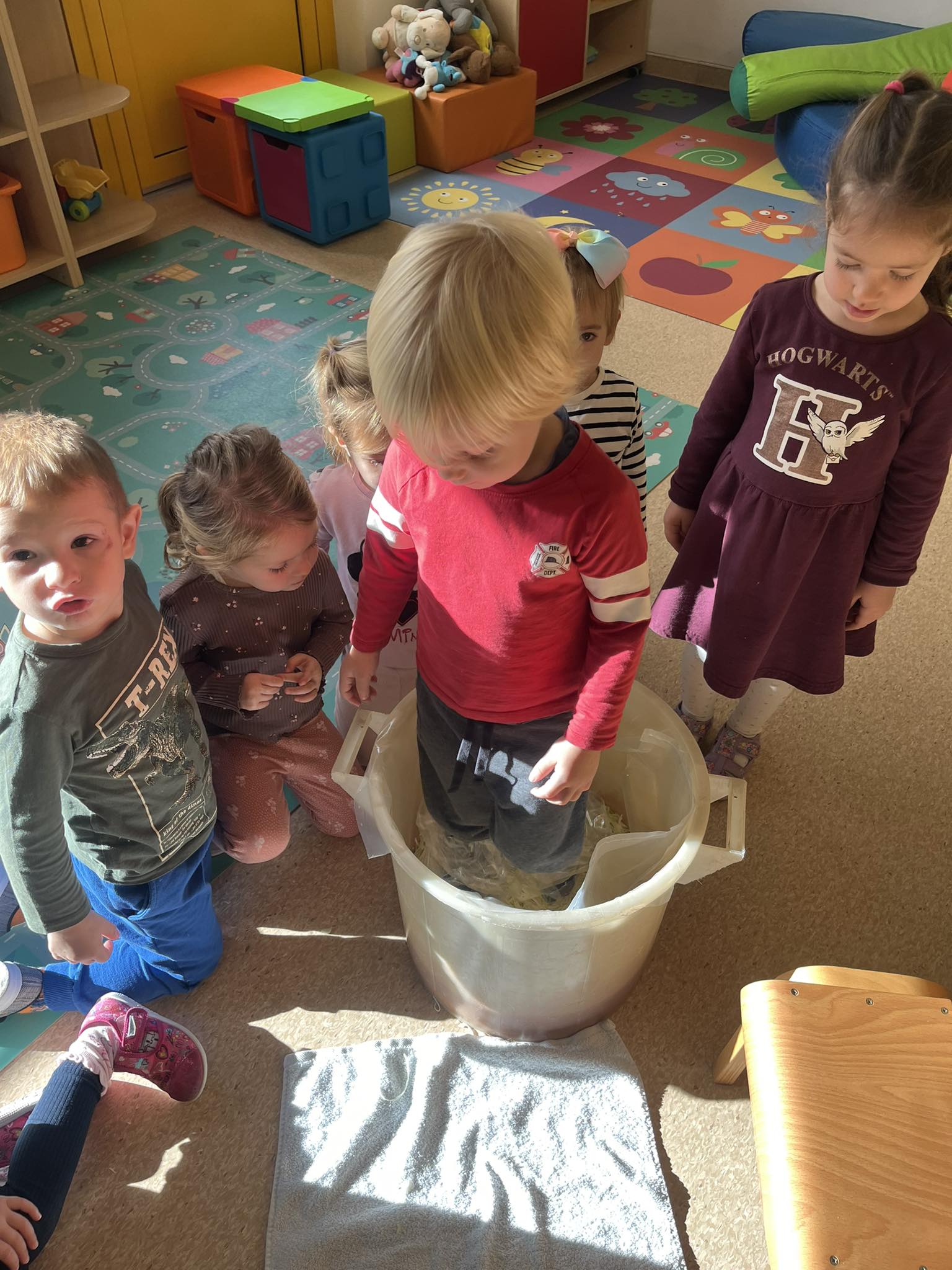 Mjesec travanj u skupini “Tratinčice” bio je vrlo šarolik. Najprije smo obilježili Dan planeta Zemlje istraživanjem našeg planeta, naučili smo koje životinje nastanjuju pojedini kontinent te smo izradili vlastitu kartu svijeta. Također nas je i posjetila gospođa Ivana Rojko koja je djeci ispričala edukativnu priču te im približila znanje o životinjama, a nakon toga su pojedine životinje mogli i istraživati tijekom posjete. Noć knjige obilježili smo zajedno s jasličkom skupinom “Mrkvice” sa dvije pričaonice priča. Priče koje su djeca slušala bile su “Vrlo gladna gusjenica” te “Pikov kišobran”. Povodom projekta “Tjedan zdravlja” započeli smo s izradom edukativnih plakata koje smo stavili u novoopremljeni centar tržnice. Tamo su djeca svakodnevno učila o zdravim namirnicama te zdravim navikama. Tako smo se i okušali u izradi domaće limunade i voćnog smoothia te smo kroz takve aktivnosti kod djece poticali istraživanje i isprobavanje zdravih namirnica te suradnju tijekom pripreme zdravih napitaka.Krajem mjeseca obilježili smo u suradnji sa ostalim skupinama Međunarodni dan plesa, a obilježili smo ga na način tako što smo svi zajedno zaplesali na vrtičkom igralištu.