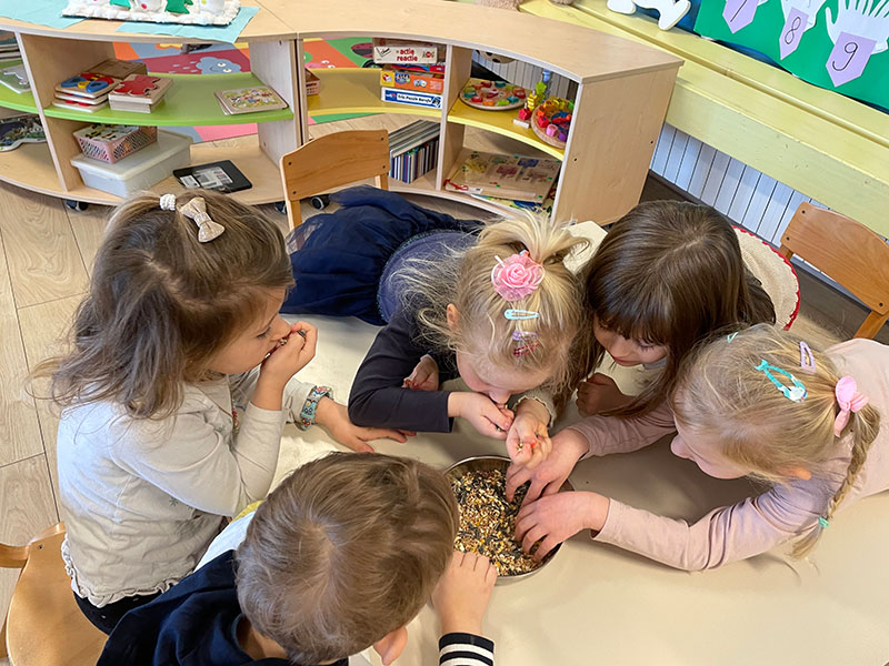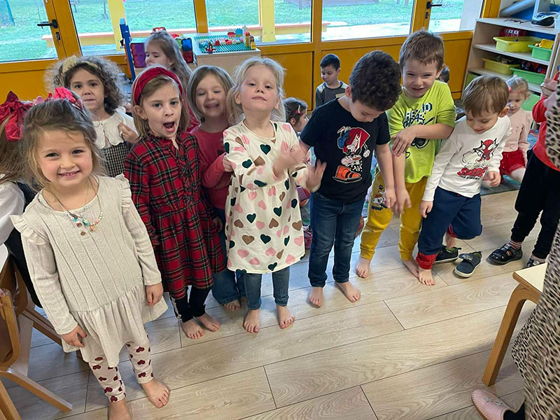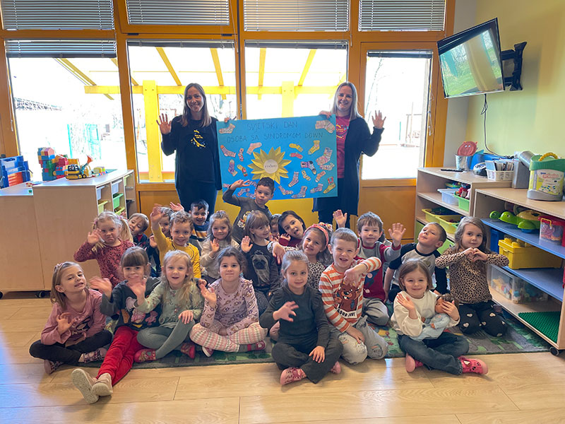 Prvi dan proljeća pozdravili smo pjesmom a naši prijatelji iz odgojno-obrazovne skupine „ Golobeki“ priredili su za nas predstavu koju smo sa zanimanjem odgledali. Nekolika dana prije posjetile su nas djelatnice Udruge za sindrom Down Međimurske županije koje su kroz razgovor, priču, radionicu nam pokušale približiti pojam o Down sindromu. Na njihov dan dali smo im podršku tako što smo obukli različite čarape.
