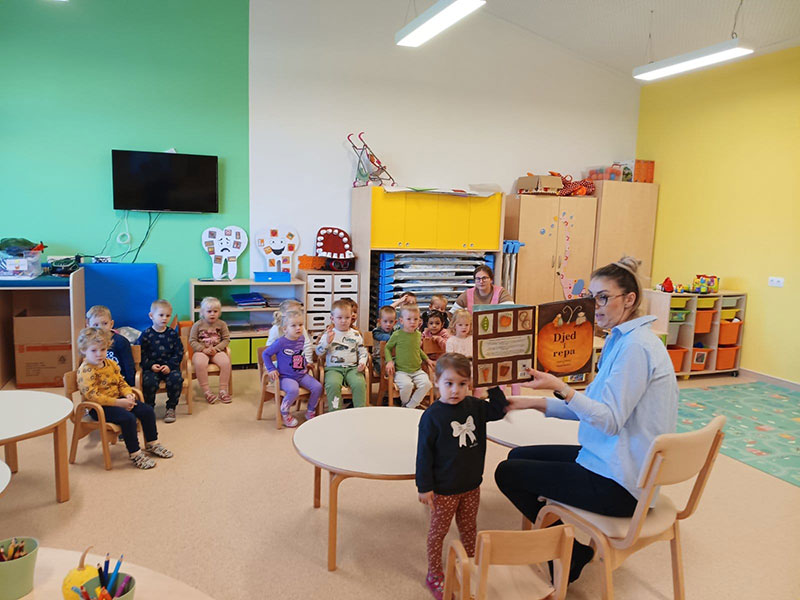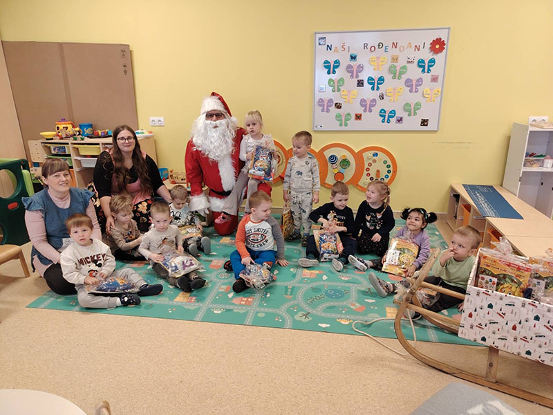 Tijekom siječnja učili smo o zimskoj odjeći i obući te važnosti toplog odijevanja. Djeca su istraživala led, promatrala njegove promjene i slikala ledom. Poseban doživljaj bila je i zimska čajanka, koja je protekla u ugodnom i veselom ozračju. Obilježili smo Svjetski dan smijeha – smiješnim igrama, pokretima i zajedničkim druženjem koje je poticalo dobro raspoloženje i pozitivne emocije kod djece. Obilježili smo i Međunarodni dan zagrljaja, naglašavajući važnost bliskosti, prijateljstva i emocionalne sigurnosti. U sklopu projekta „15 po 15: cijela Hrvatska čita djeci“ posjetio nas je knjižničar Dominik iz bibliobusa, koji je djeci pročitao prigodnu priču i potaknuo ljubav prema knjizi i slušanju priča. Mjesec je bio zanimljiv i ispunjen lijepim doživljajima djece.