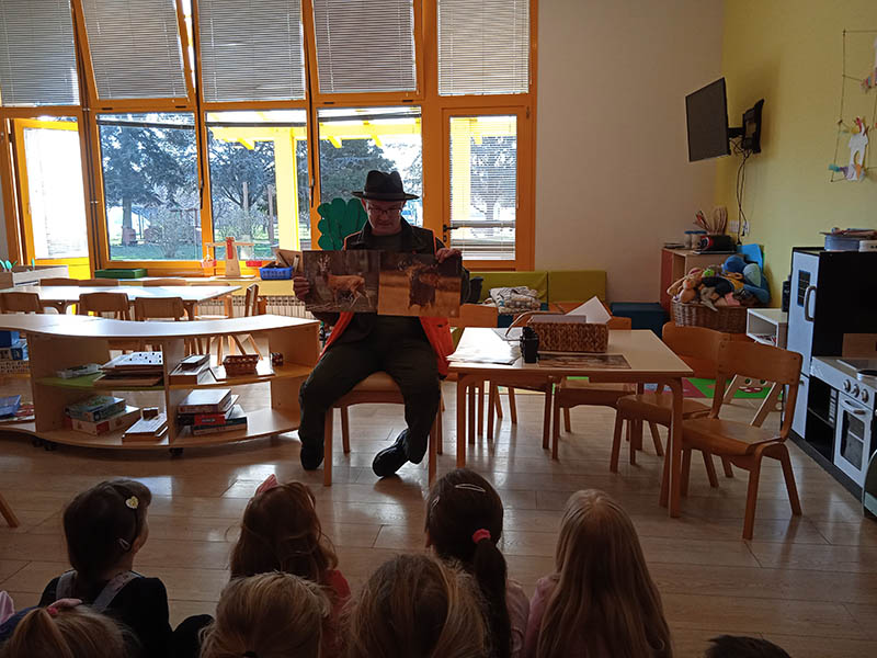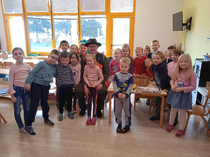 Jedna od projektnih aktivnosti koju provodimo u skupini je “Životinje zimi i briga o životinjama tokom zime”. Vezano uz tu temu realizirana je jedna lijepa suradnja s roditeljem djevojčice iz skupine. U posjetu nam je stigao lovac koji je djecu naprosto oduševio. Djeca su čula mnogo zanimljivih informacija o lovu, lovcima, životinjama, brizi za prirodu, životinje i imala su priliku aktivno sudjelovati u razgovoru sa lovcem.