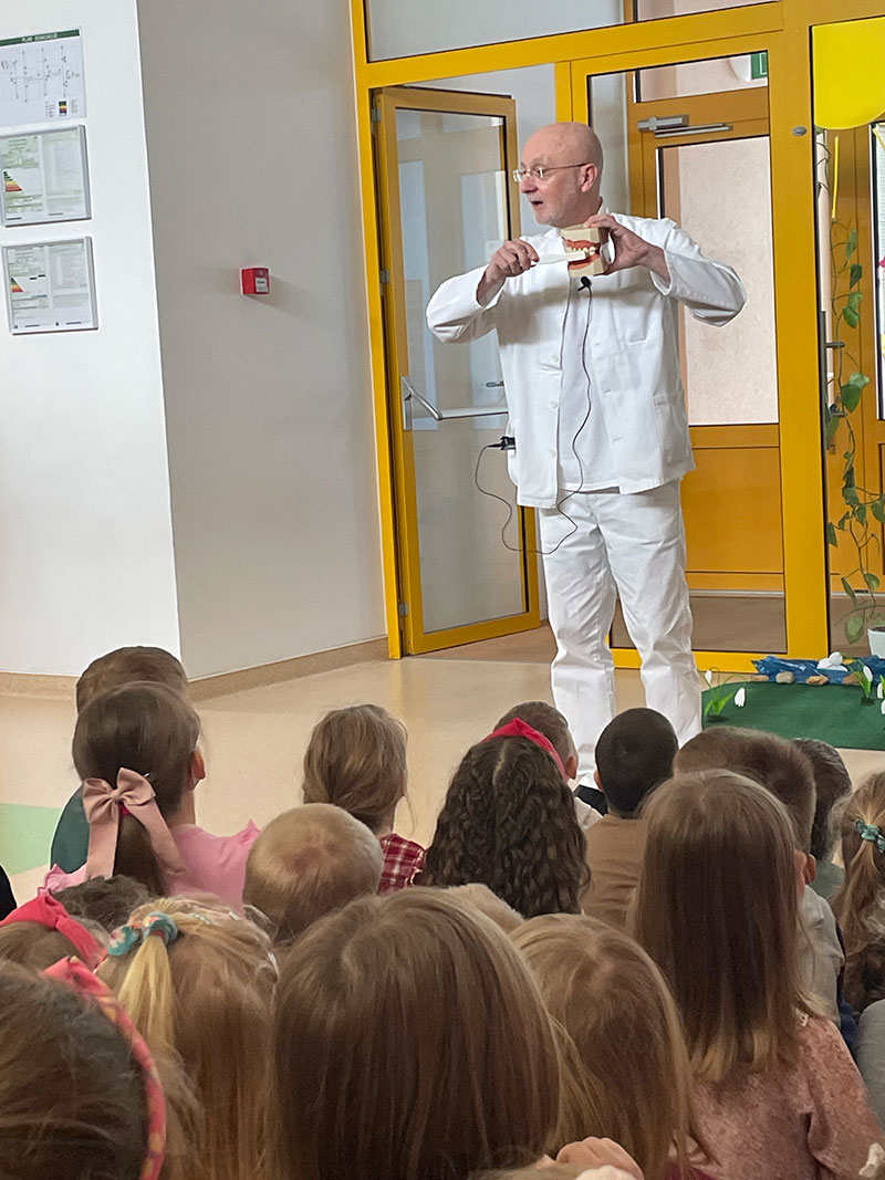 Na kraju mjeseca u posjet nam je stigao stomatolog dr. Mađarić koji je i ovaj put za nas pripremio edukativnu radionicu o tome kako pravilno četkati svoje zubiće da nam budu zdravi i jaki.