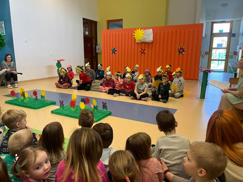 Prvi dan proljeća pozdravili smo pjesmom a naši prijatelji iz odgojno-obrazovne skupine „ Golobeki“ priredili su za nas predstavu koju smo sa zanimanjem odgledali. Nekolika dana prije posjetile su nas djelatnice Udruge za sindrom Down Međimurske županije koje su kroz razgovor, priču, radionicu nam pokušale približiti pojam o Down sindromu. Na njihov dan dali smo im podršku tako što smo obukli različite čarape.