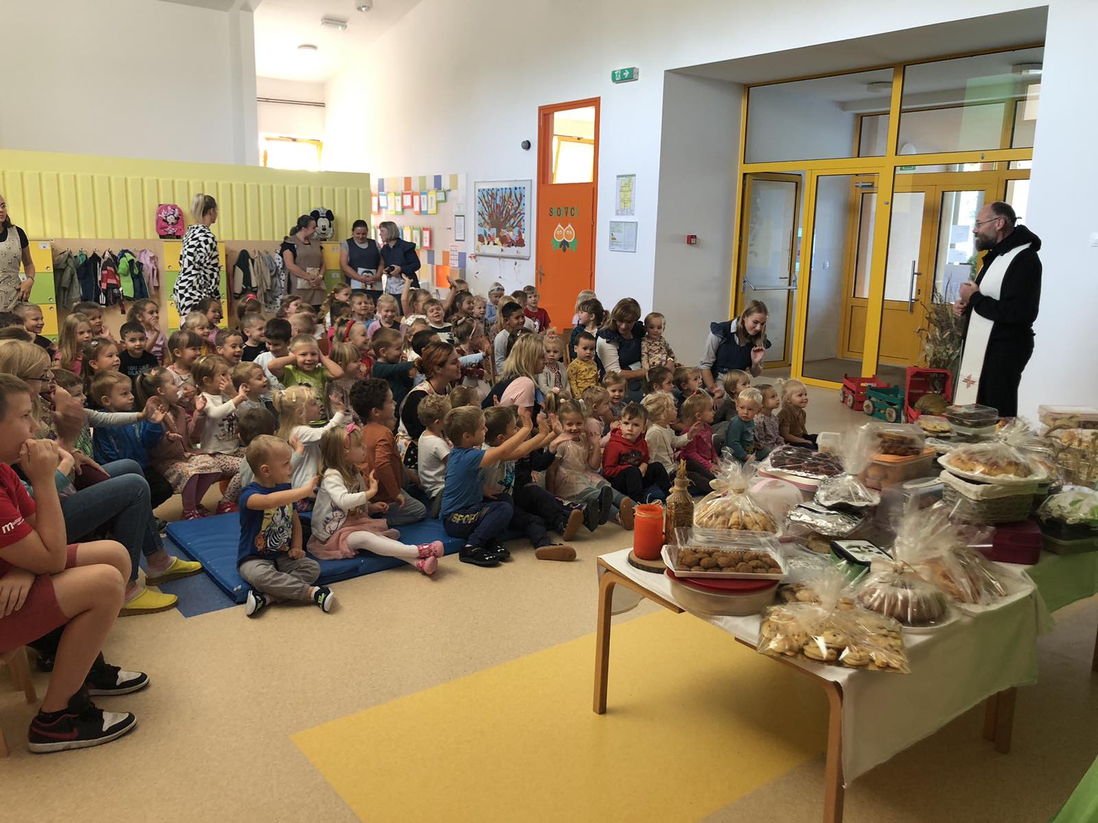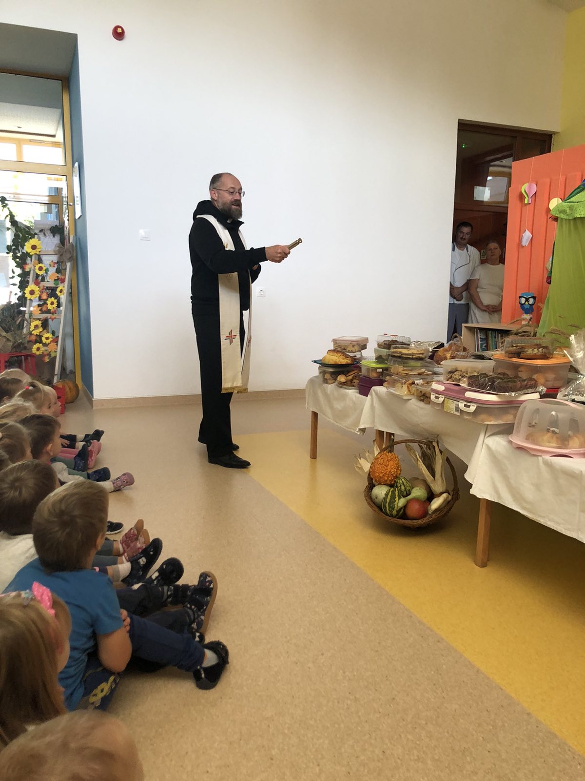 Dane kruha smo obilježili u petak, 06.10.2023.godine. Na svečanom stolu na hodniku vrtića našlo se bogatstvo krušnih proizvoda koje su pripremile vrijedne majke i bake, a koje je blagoslovio župnik Tomislav Kos. Nakon zajedničkog blagoslova, molitve i zahvale te pjesama posvećenih kruhu i onima koji ga spravljaju djeca su s odgojiteljicama po skupinama blagovala blagoslovljene krušne proizvode.