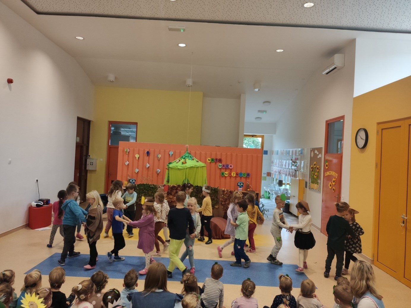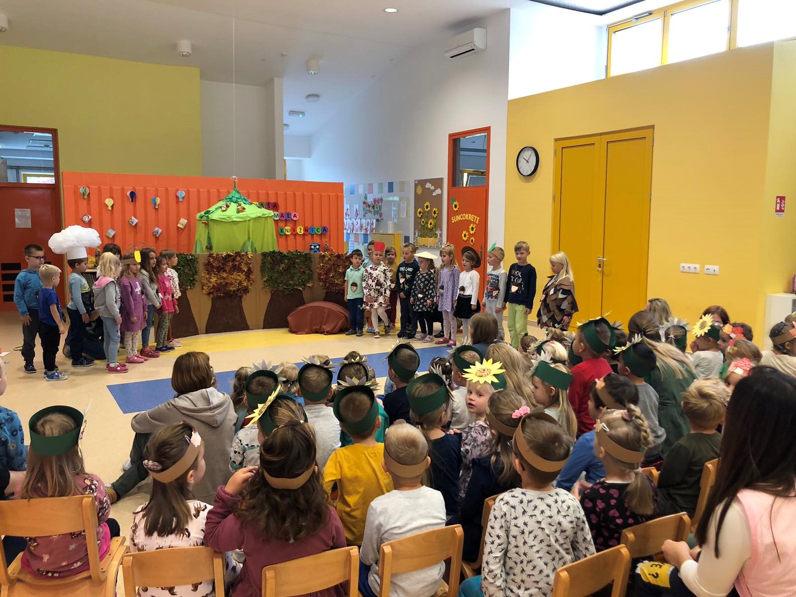 U našem je vrtiću bilo posebno veselo 24. 10. 2023.godine kad smo održali našu “Jesensku svečanost”. Uz razne prigodne stihove, pjesmice i igrokaze, koje su za sve nas pripremila djeca iz skupine “Smokvice”, pozdravili smo jesen. Iako nam jesen donosi magle i kišu, nekada glasnu a nekada tišu, nama nije bilo hladno. Zajednička nam je pjesma ugrijala srca, a dodatno nas je razveselo zajedničko druženje svih skupina uz keksiće, jabučice i ples.