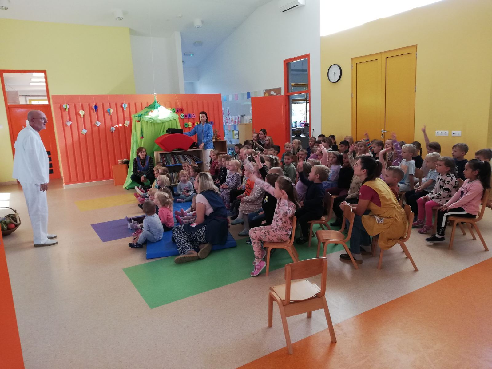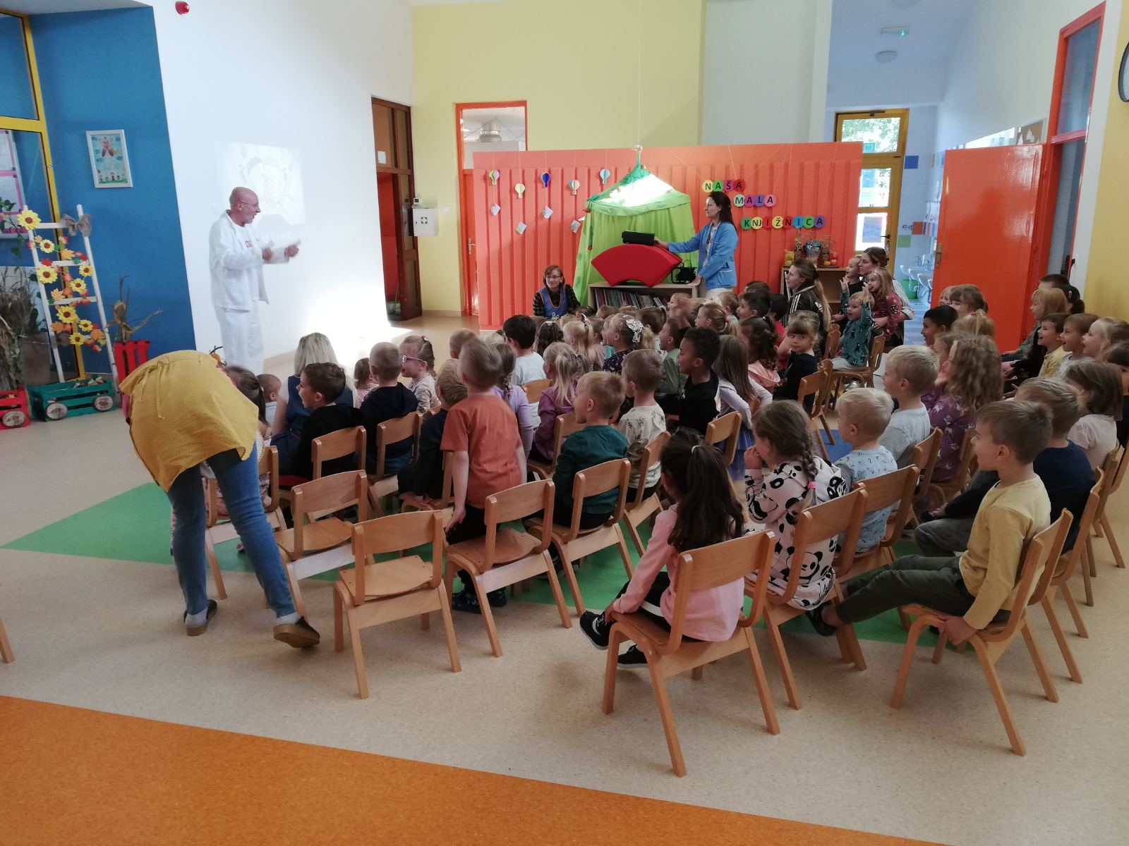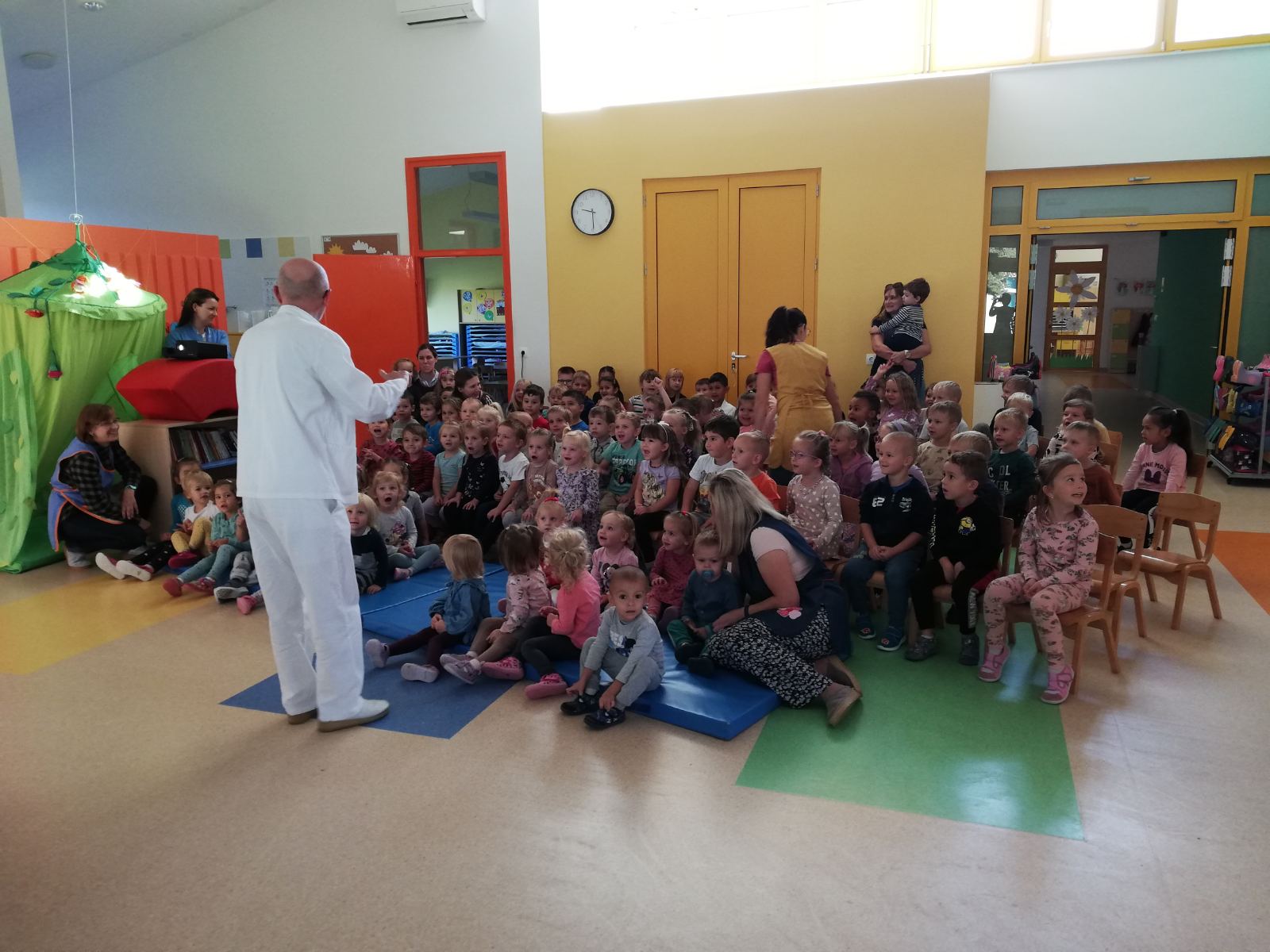 Povodom Mjeseca oralnog zdravlja, koji se obilježava od 12.rujna do 12. listopada 2023.godine, posjetio nas je stomatolog Vladimir Mađarić i svu djecu iz vrtića upoznao djecu s važnosti i načinu održavanja pravilne oralne higijene i očuvanja zdravlja zubi, ispričao edukativnu priču o Gricu i Grecu kroz koju su djeca stjecala iskustvo o uzročno-posljedičnim odnosima (što će se dogoditi ako ne peremo redovito zube ili ako jedemo puno hrane koja je neprijatelj zdravlja zubi).