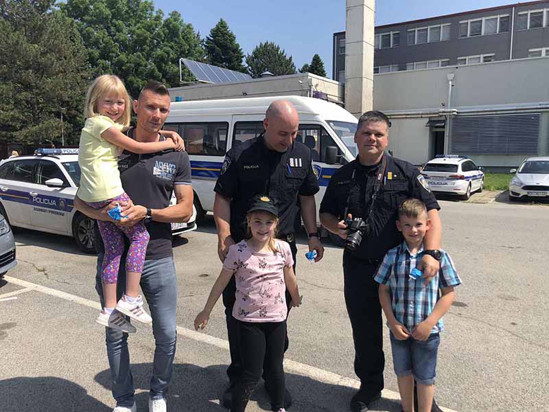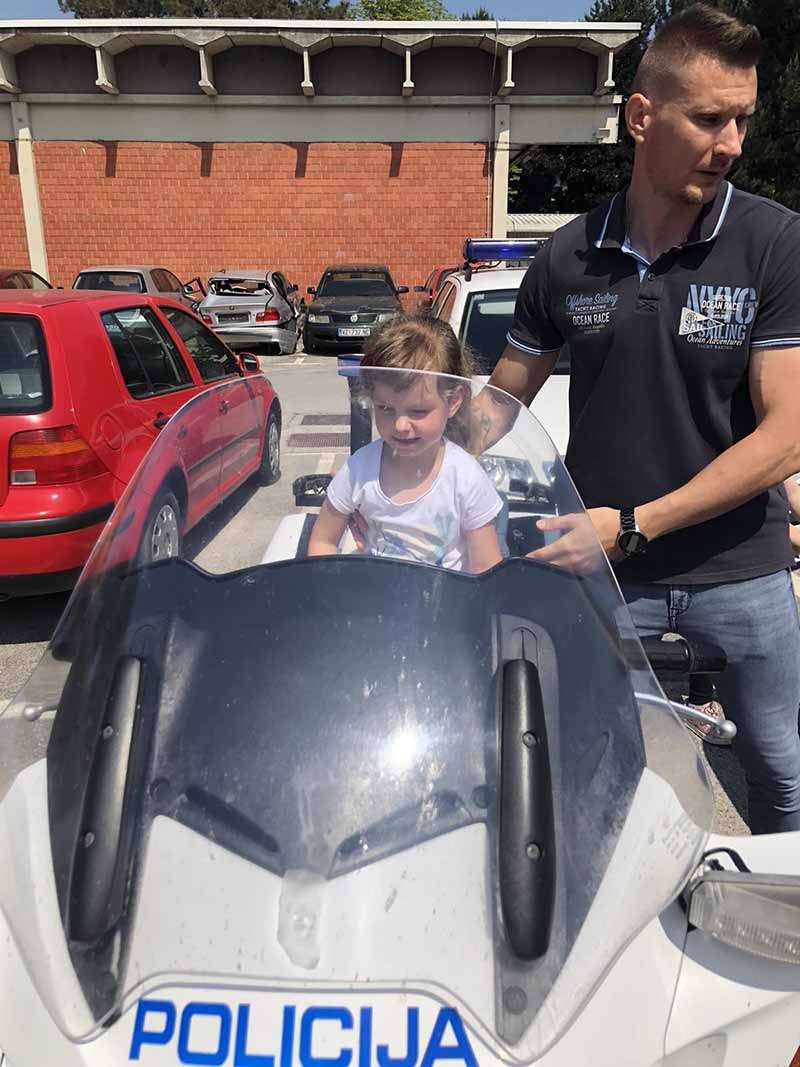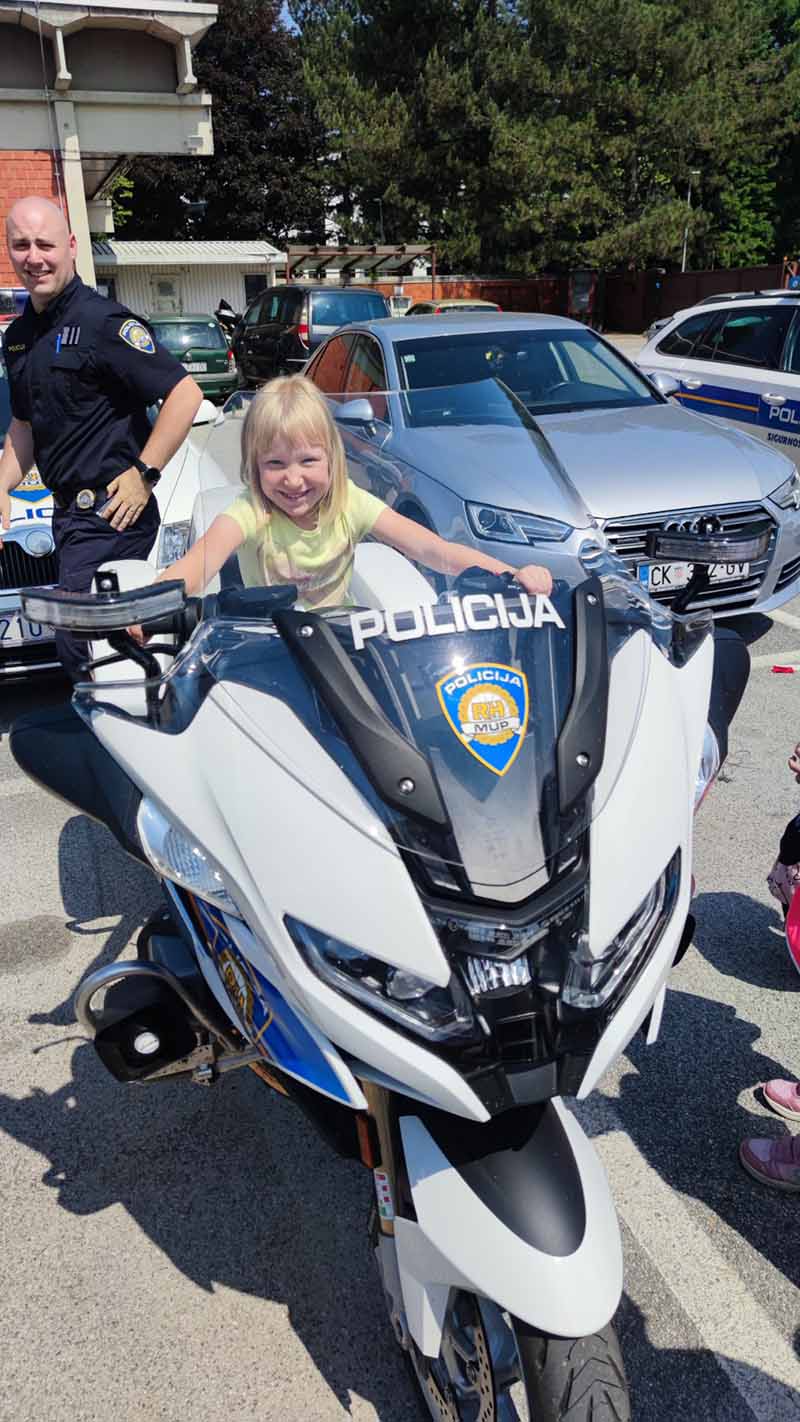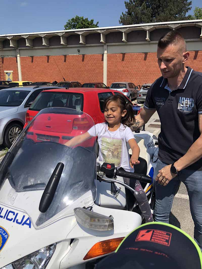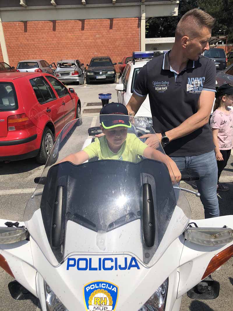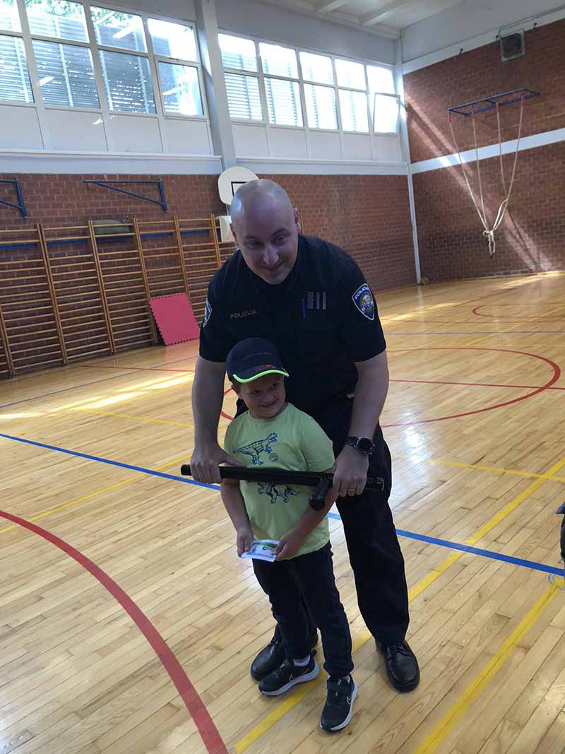 U sportskoj dvorani te u dvorištu Policijske uprave policijski službenici prometne i interventne policije pripremili su raznu opremu, tehnička pomagala i službena vozila (policijski motocikl) koja koriste u svom svakodnevnom radu. Ujedno, na zanimljiv način opisali su mališanima kako izgleda jedan radni dan interventnog i prometnog policajca.