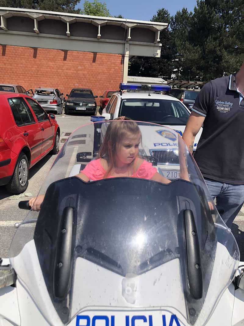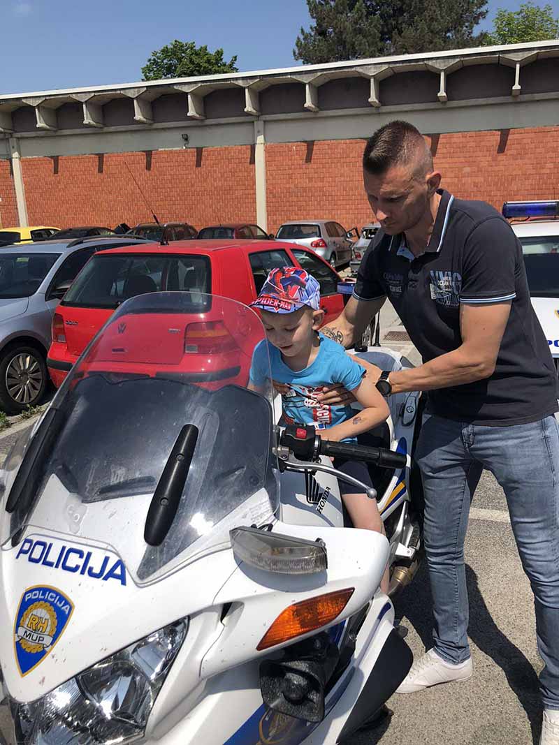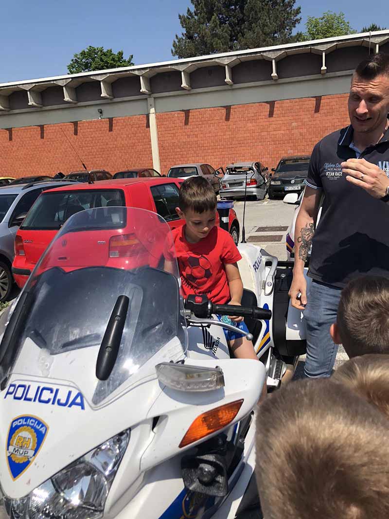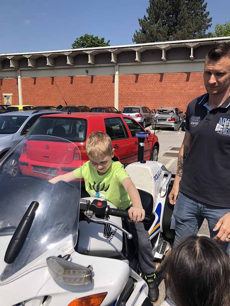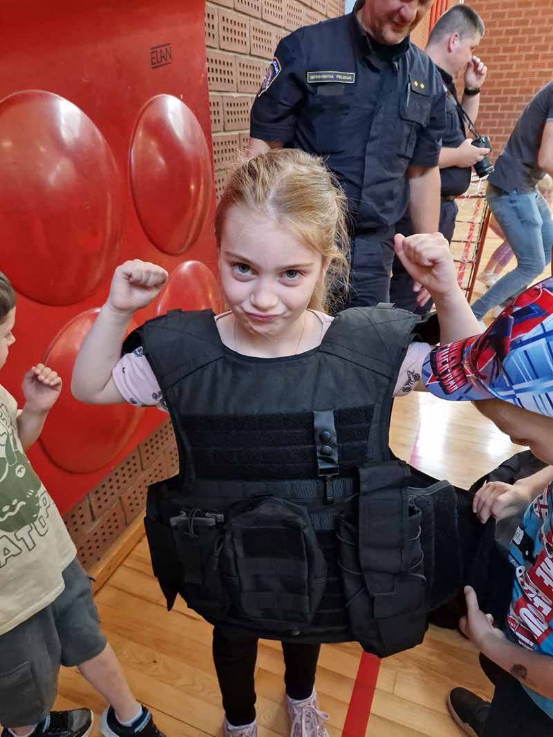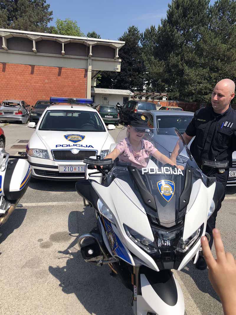 U sportskoj dvorani te u dvorištu Policijske uprave policijski službenici prometne i interventne policije pripremili su raznu opremu, tehnička pomagala i službena vozila (policijski motocikl) koja koriste u svom svakodnevnom radu. Ujedno, na zanimljiv način opisali su mališanima kako izgleda jedan radni dan interventnog i prometnog policajca.