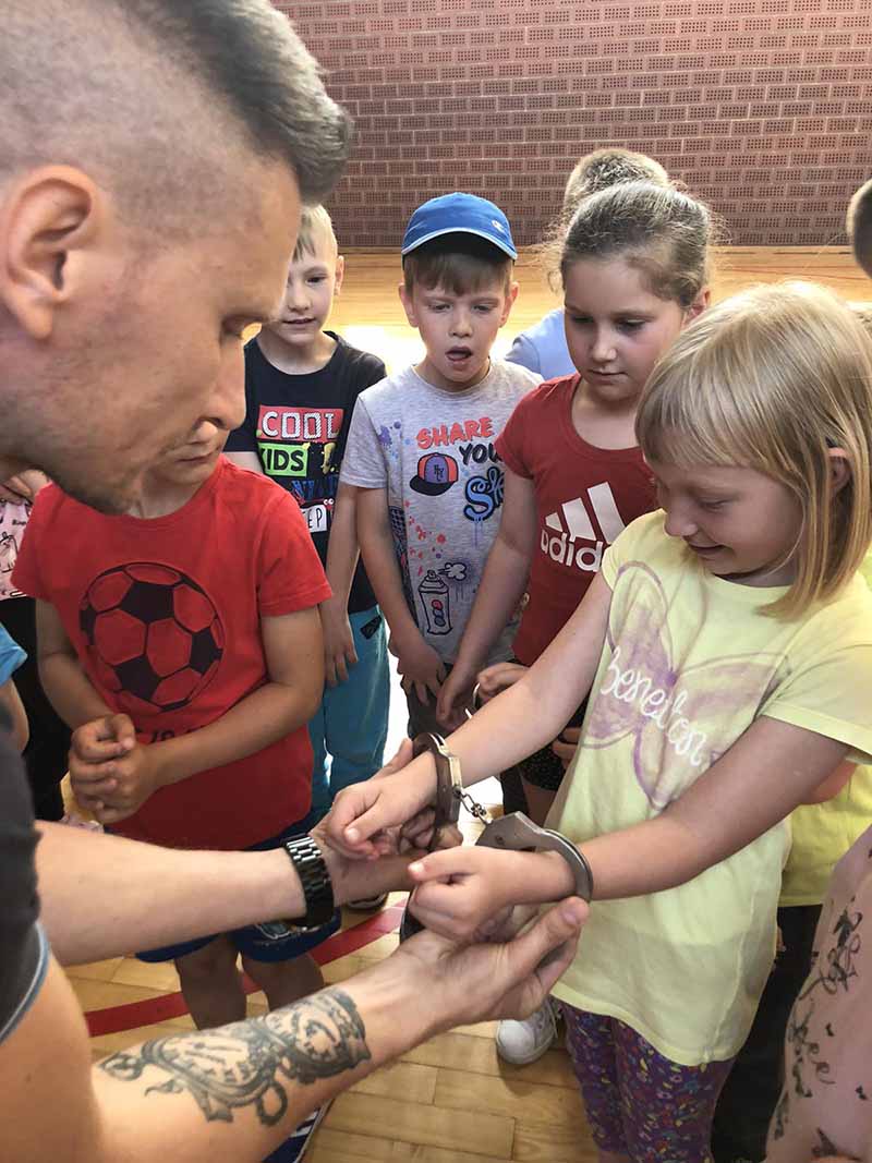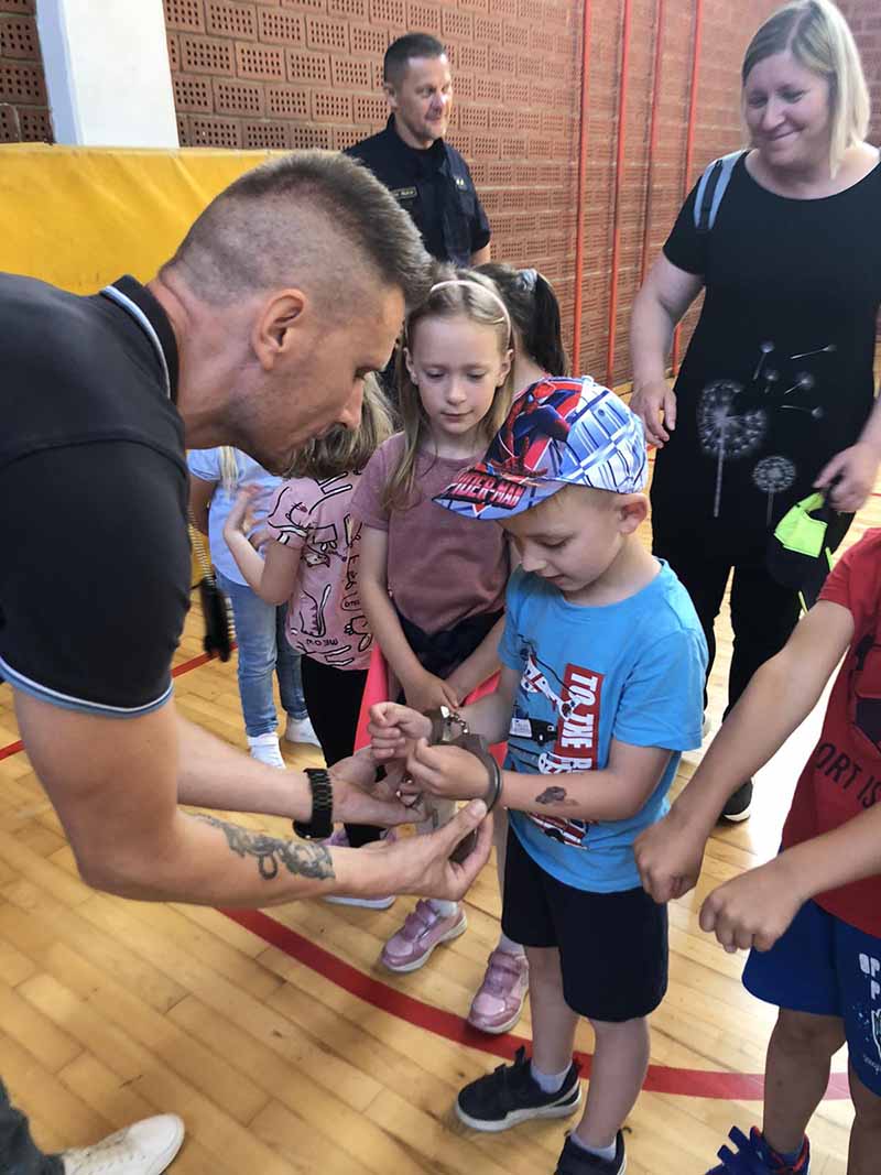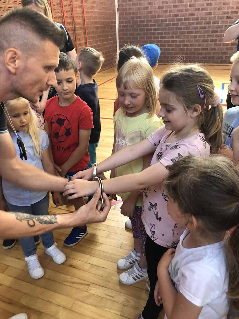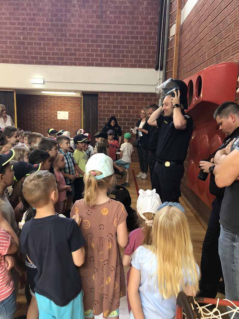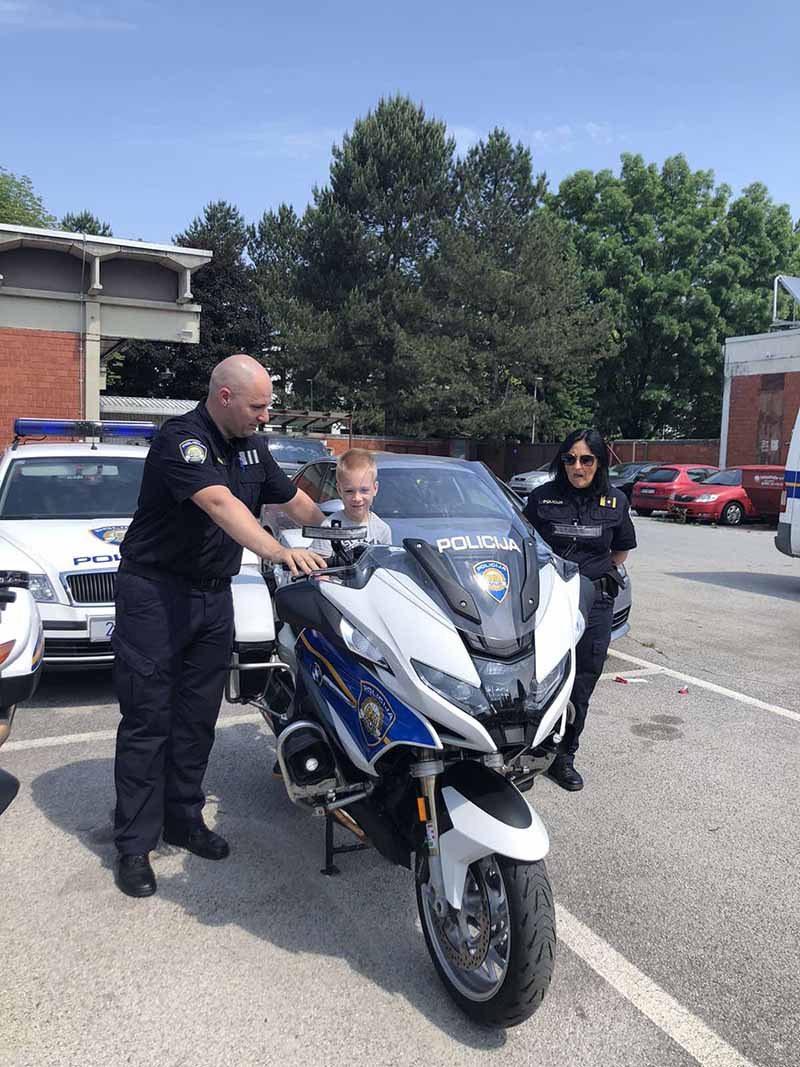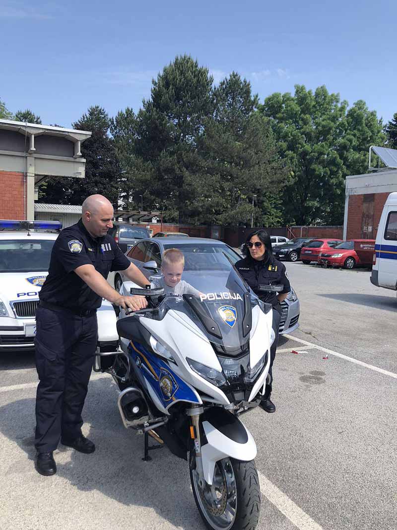 U sportskoj dvorani te u dvorištu Policijske uprave policijski službenici prometne i interventne policije pripremili su raznu opremu, tehnička pomagala i službena vozila (policijski motocikl) koja koriste u svom svakodnevnom radu. Ujedno, na zanimljiv način opisali su mališanima kako izgleda jedan radni dan interventnog i prometnog policajca.