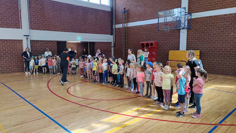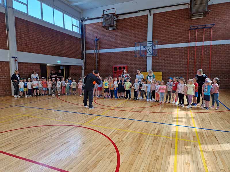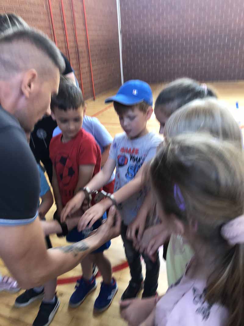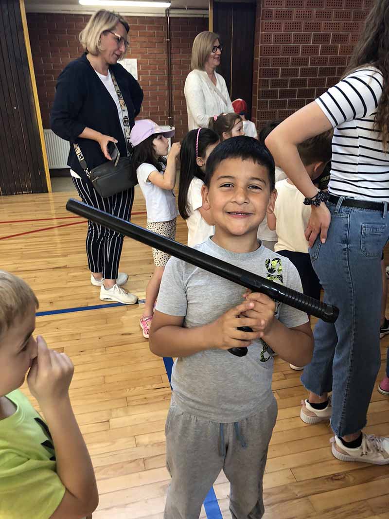 Na početku posjeta na referadi osobnih dokumenta upoznali su se s izradom osobnih iskaznica, putovnica i vozačkih dozvola. Nakon toga u sportskoj dvorani nakratko su se rastrčali, a sve pod budnim nadzorom instruktora za stručno osposobljavanje policijskih službenika.