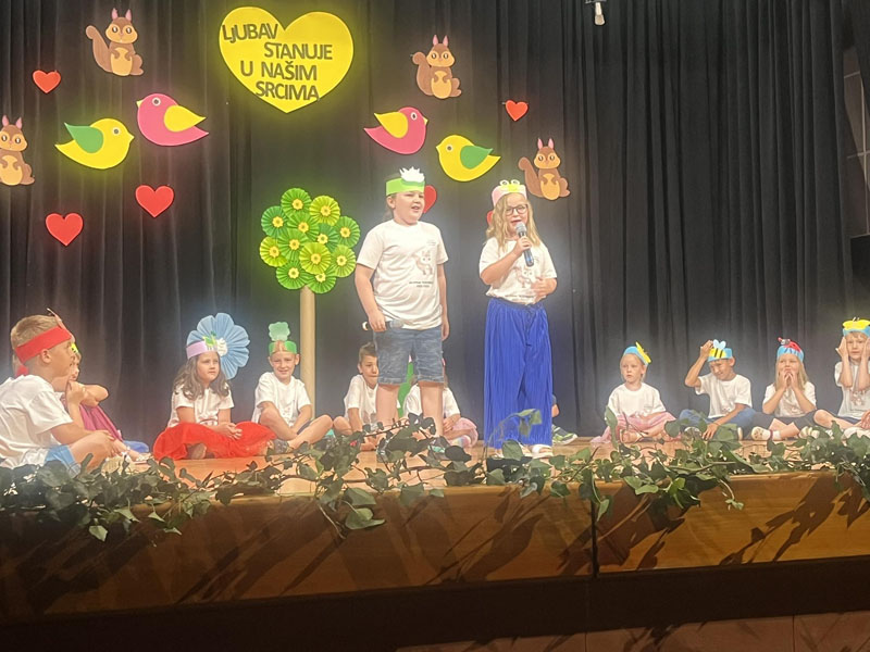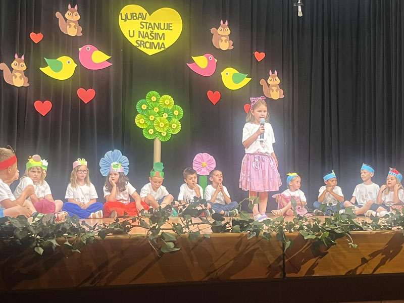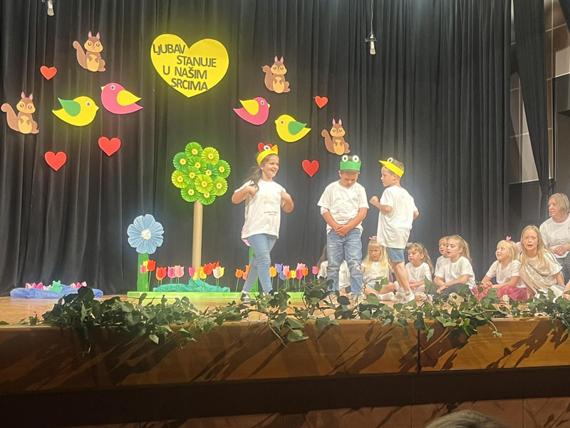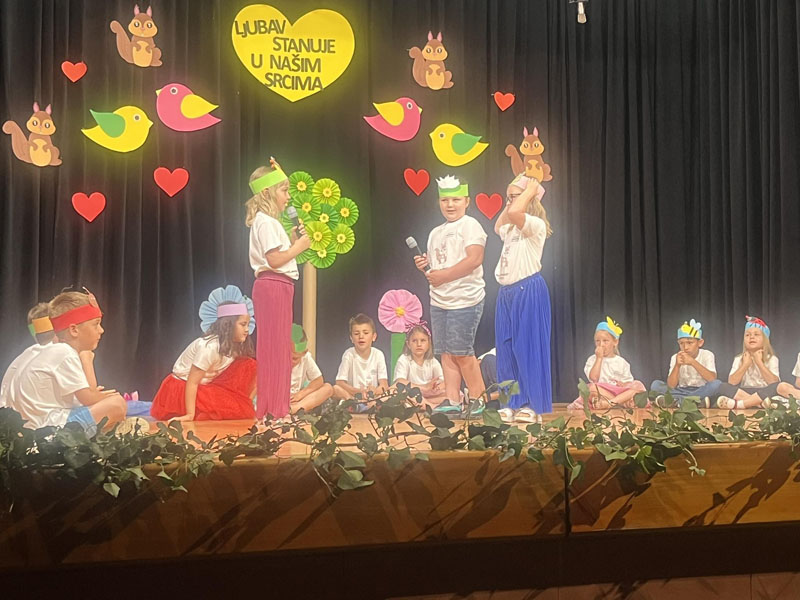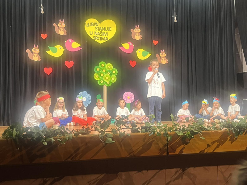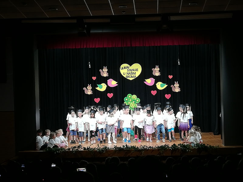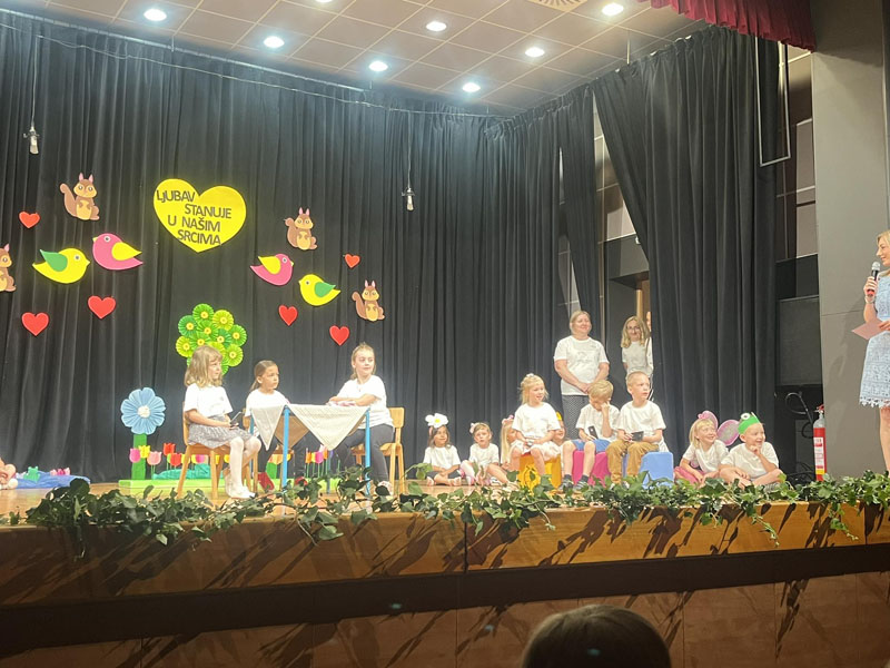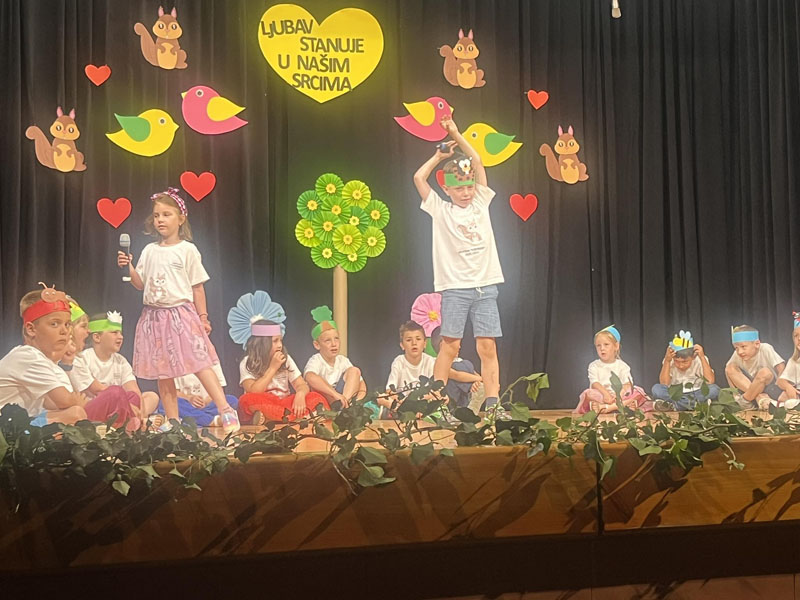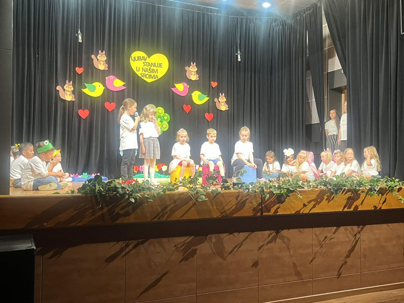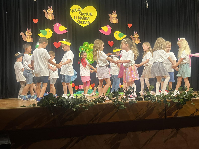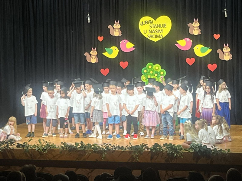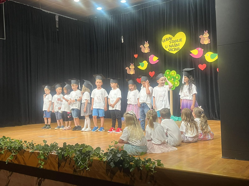 U četvrtak, 15.6.2023. godine djeca iz skupina ˝Ptičice˝ i ˝Vjeverice˝ upriličila su Završnu svečanost i oproštaj malih vrtićkih maturanata od vrtića. Uz moto svečanosti ˝Ljubav stanuje u našim srcima˝ svojim su gostima i roditeljima poslala poruku važnosti međusobnog razumijevanja, ljubavi i suradnje.Kroz svoje su nastupe pokazali veliku dozu hrabrosti i zrelosti te pokazali da su spremni za nove životne avanture.