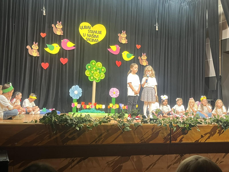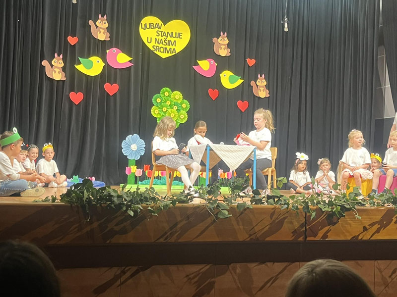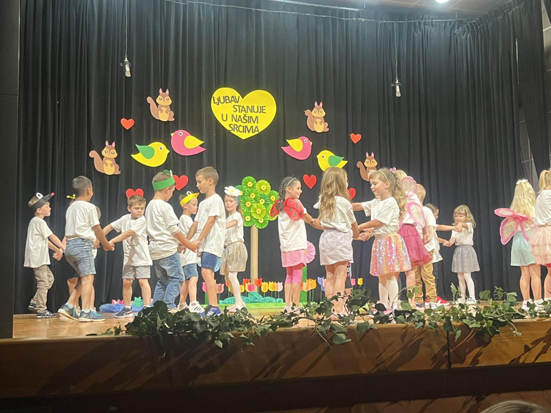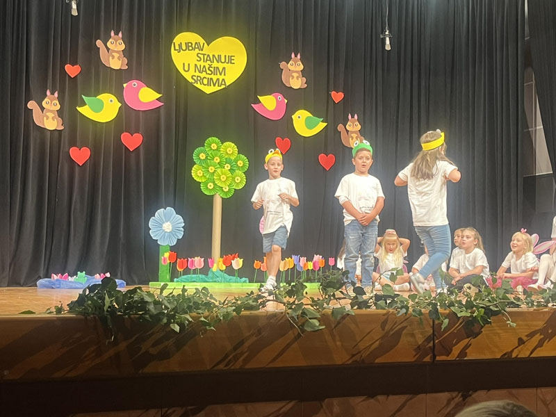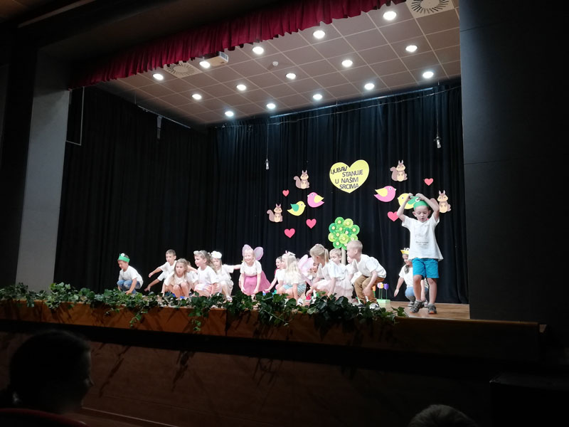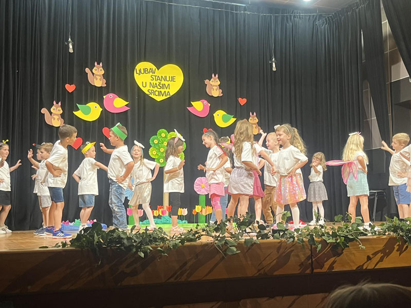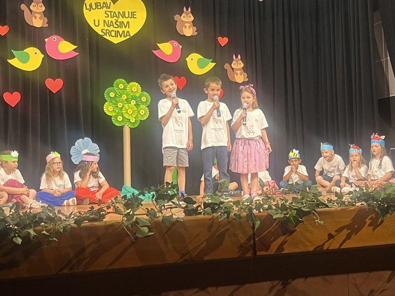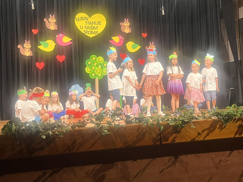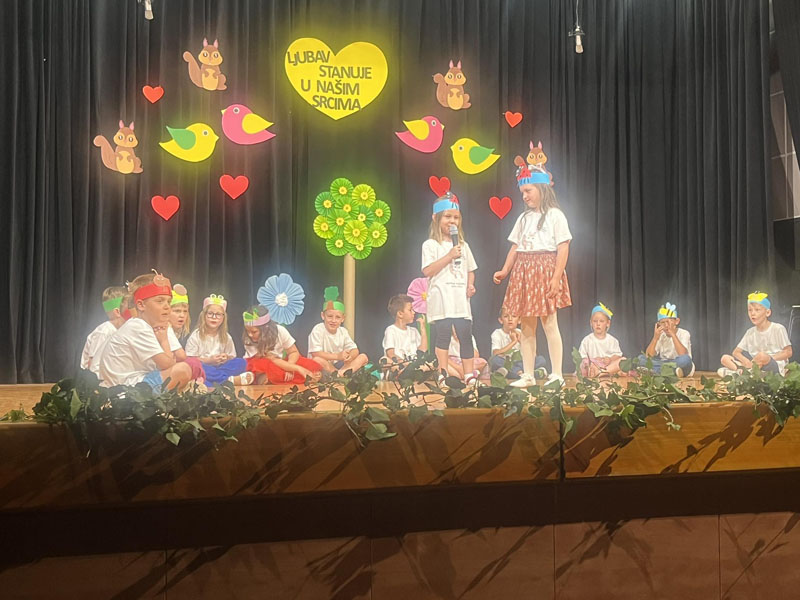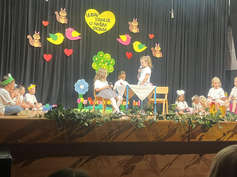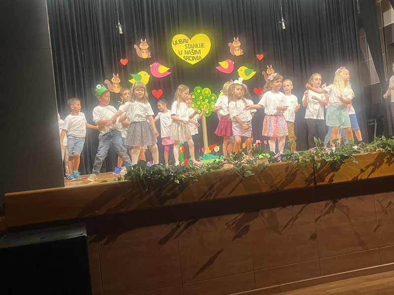 U četvrtak, 15.6.2023. godine djeca iz skupina ˝Ptičice˝ i ˝Vjeverice˝ upriličila su Završnu svečanost i oproštaj malih vrtićkih maturanata od vrtića. Uz moto svečanosti ˝Ljubav stanuje u našim srcima˝ svojim su gostima i roditeljima poslala poruku važnosti međusobnog razumijevanja, ljubavi i suradnje.Kroz svoje su nastupe pokazali veliku dozu hrabrosti i zrelosti te pokazali da su spremni za nove životne avanture.