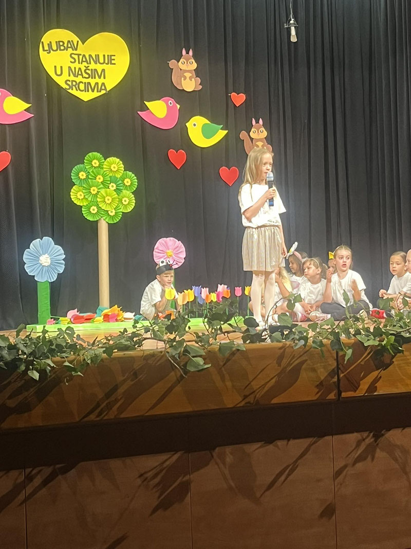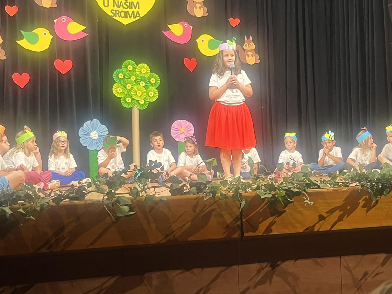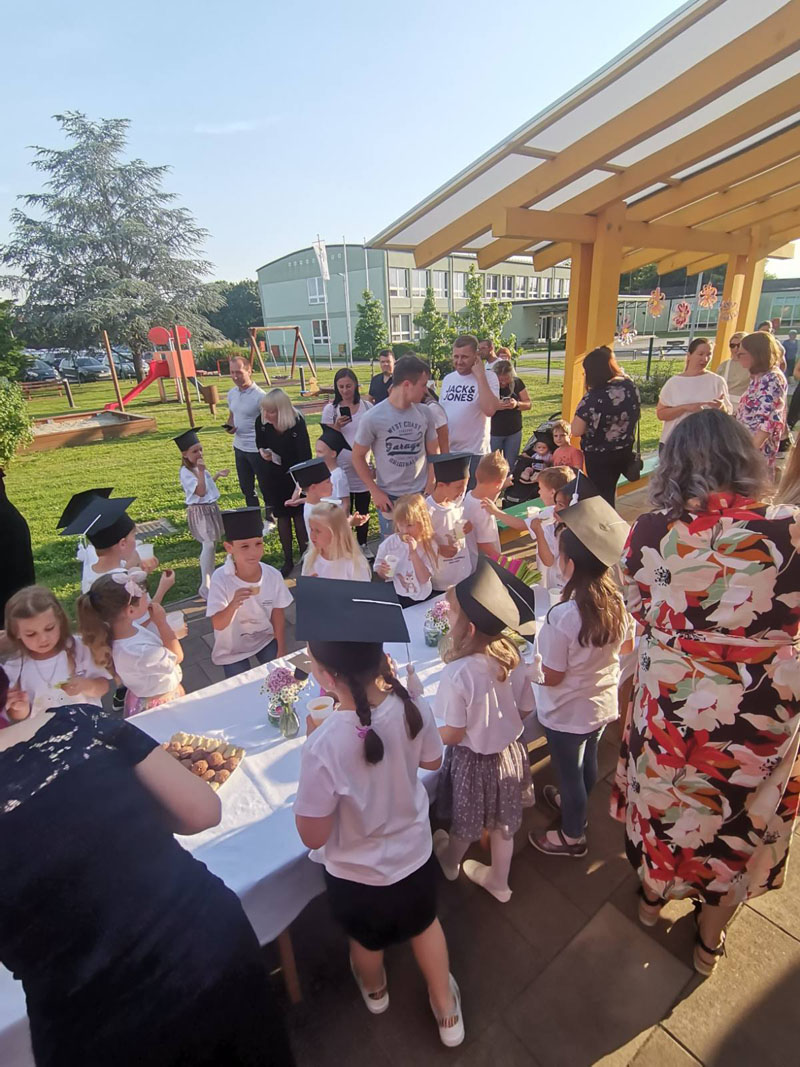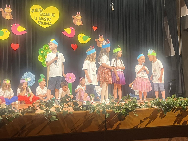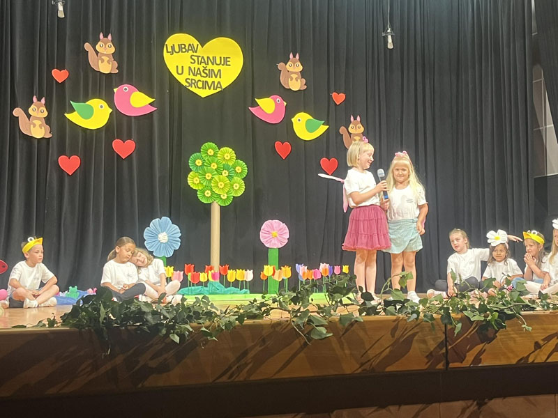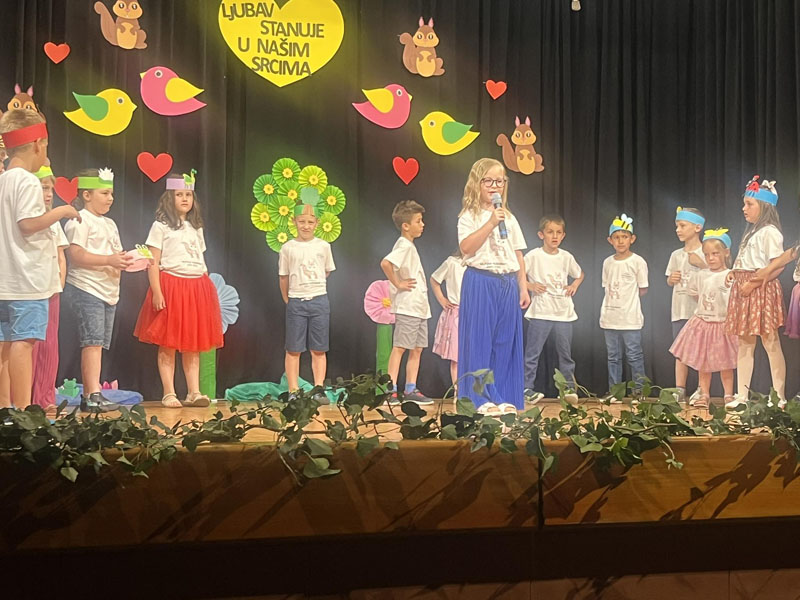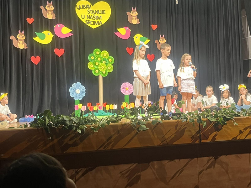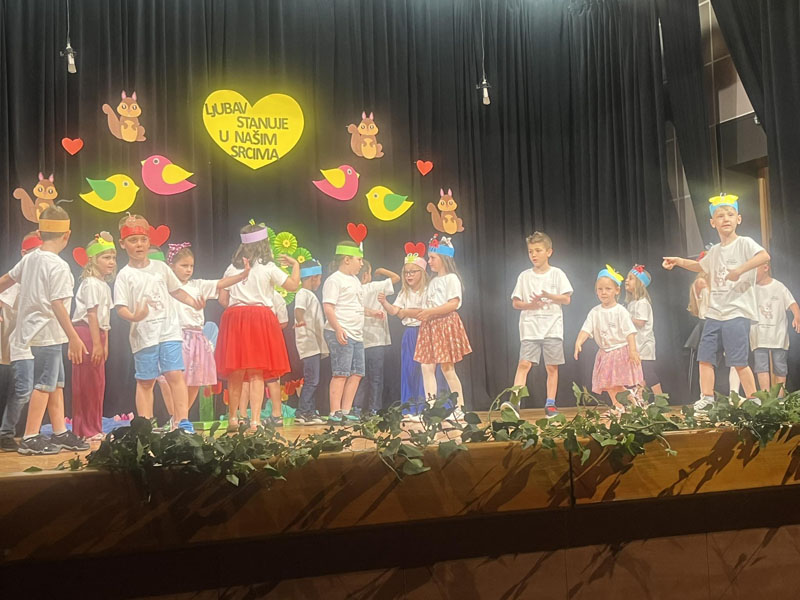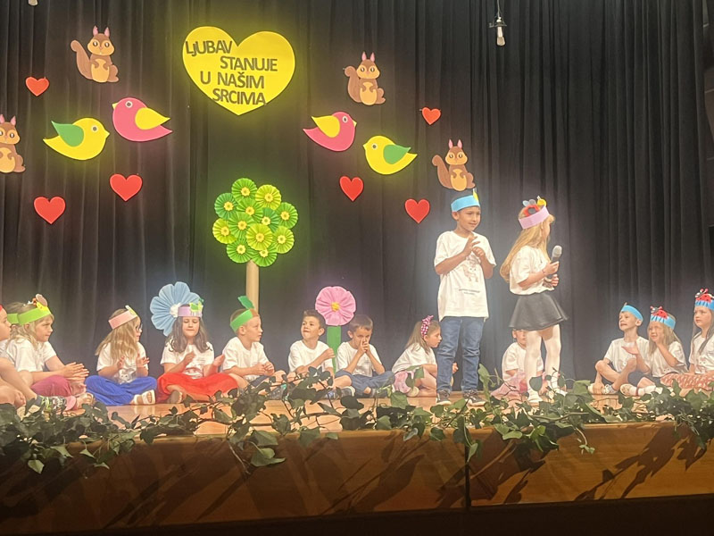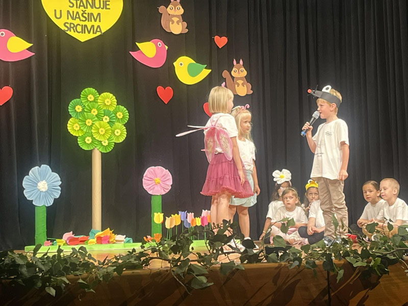 U četvrtak, 15.6.2023. godine djeca iz skupina ˝Ptičice˝ i ˝Vjeverice˝ upriličila su Završnu svečanost i oproštaj malih vrtićkih maturanata od vrtića. Uz moto svečanosti ˝Ljubav stanuje u našim srcima˝ svojim su gostima i roditeljima poslala poruku važnosti međusobnog razumijevanja, ljubavi i suradnje.Kroz svoje su nastupe pokazali veliku dozu hrabrosti i zrelosti te pokazali da su spremni za nove životne avanture.